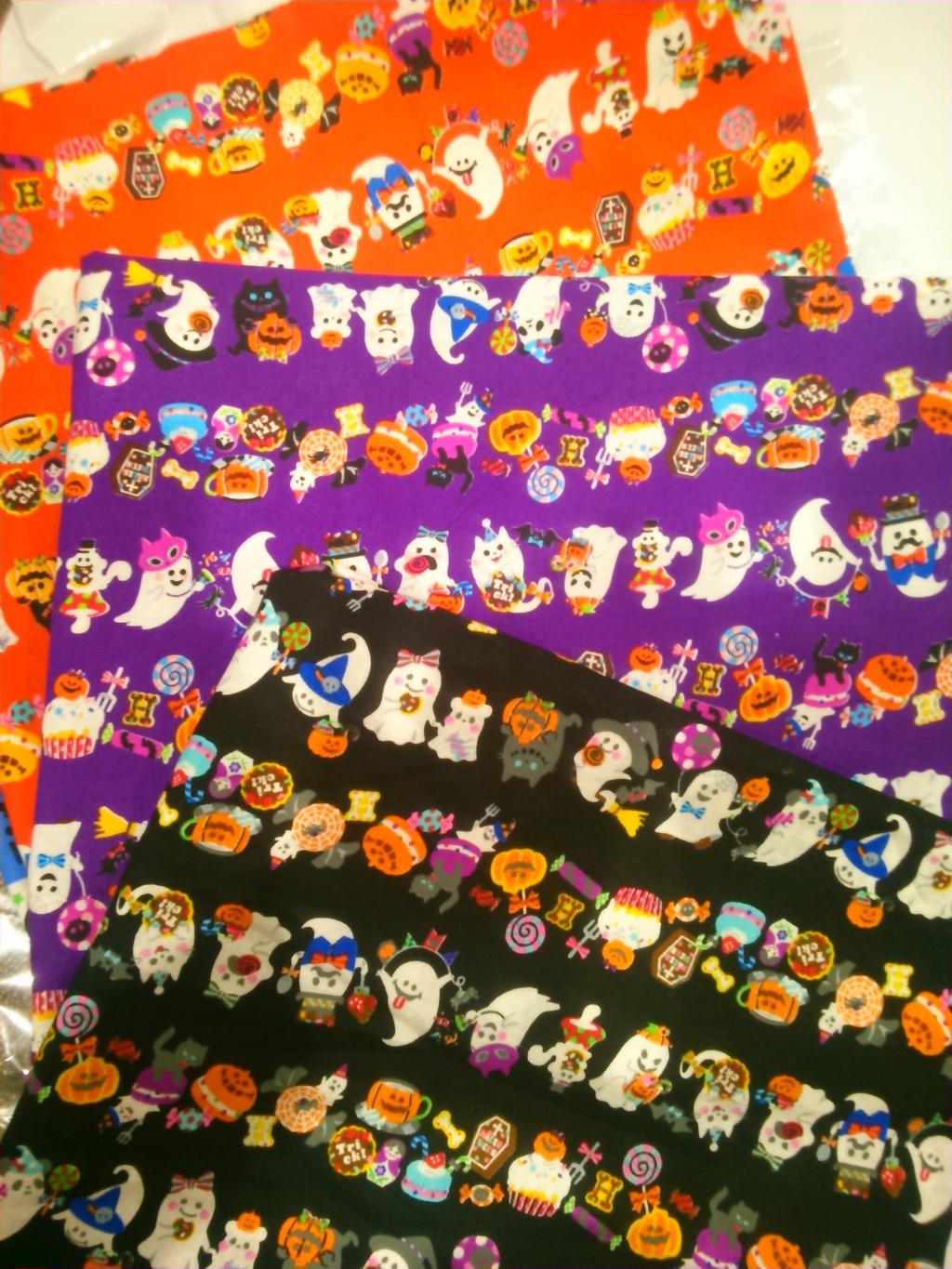 今年ゴースト推しなのは、何か理由があるのかしら? そのうち、スケルトン推しや魔女推しなんかのデザインも出たりするんでしょうかね? 黒猫推しは普段でもあるけど、ハロウィン限定の黒猫推しとかあったら可愛いかも♪ 夢は広がるから、毎年の布屋さん巡りを止められない(^^;)。