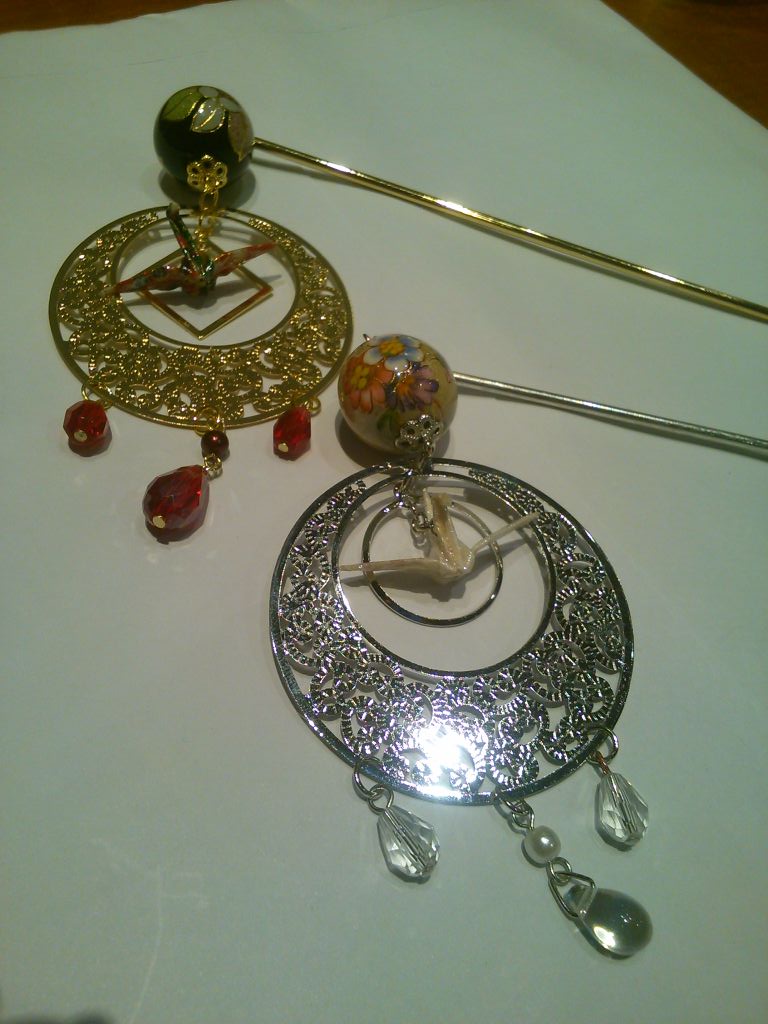 折鶴ピアスも変わらずオーダー受け付けます。今までずっと銀ベースがメインでしたが、今年の夏から金ベースを取り入れたところなかなかの人気でして(^^;)。最初は囲み物だけにする予定でしたが、その他のチャームも一通り金銀両方揃えています。実は金しかないパーツもあったりしたので、これはこれで良いかも。