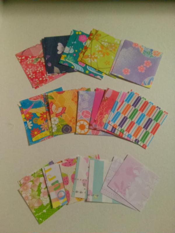 種類は和紙、折紙和柄、折紙洋風花柄、折紙POP柄、レターセット(笑)です。