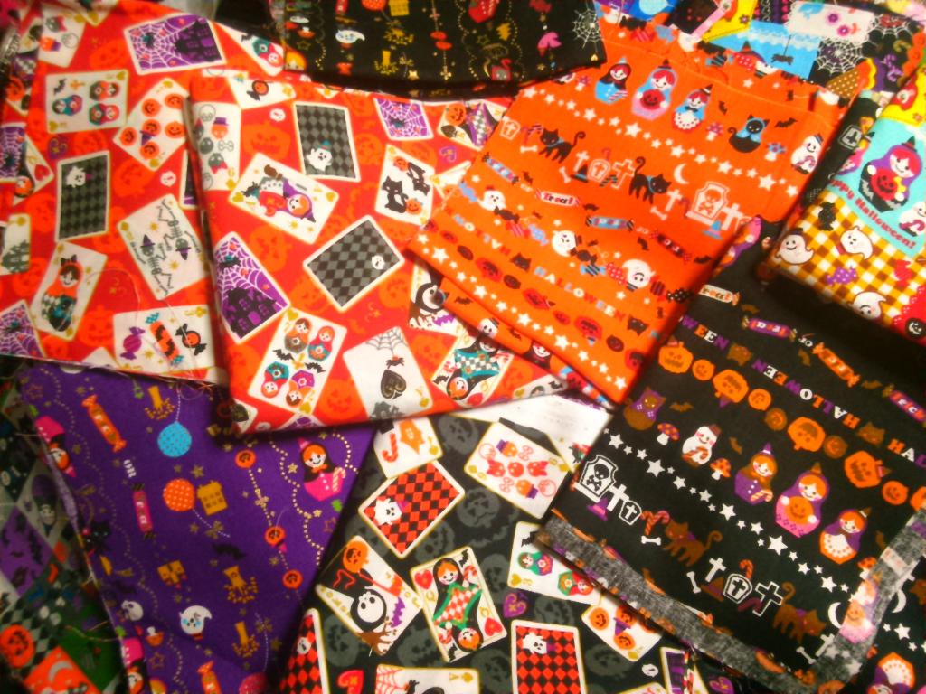 で、思い出したのが一昨年くらいに買った布。というか、去年は一昨年のブームを引き摺った感じだったんですが、とにかくマトリョーシカ柄が多かったんです。ハロウィンとマトリョーシカってなかなかない組み合わせだとは思ったんですが、一昨年くらいってちょっとした北欧ブームじゃありませんでした? それがうまい具合に取り入れられた感じで。