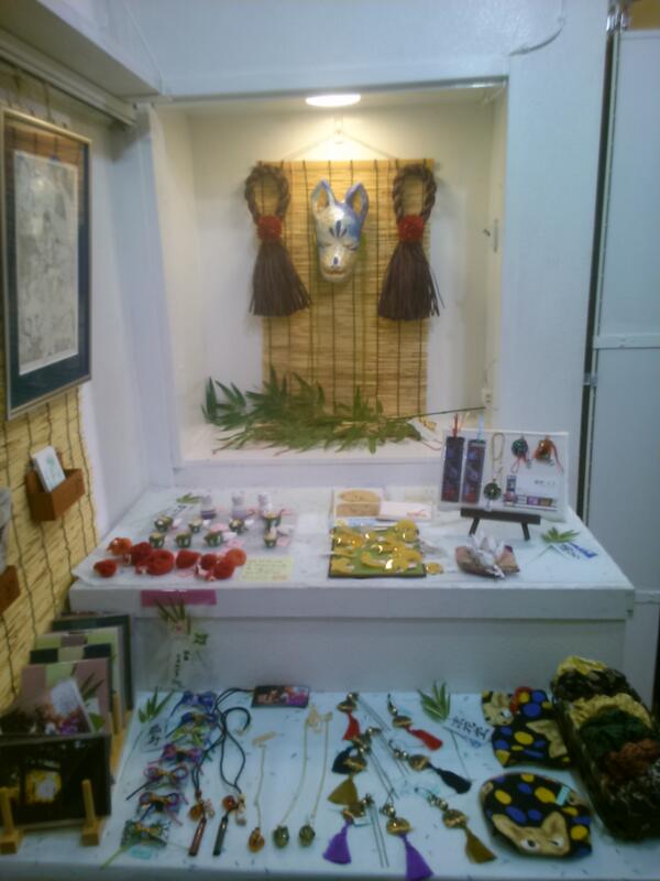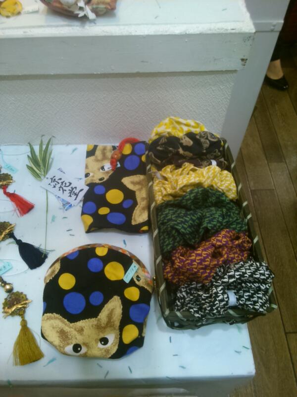 そして7/6から始まった「月箱」】さんでの「七夜月の狐」展。扇寿さん主催の狐展に参加させてもらいました。うちは布小物ということでシュシュや袋物を置いています。
