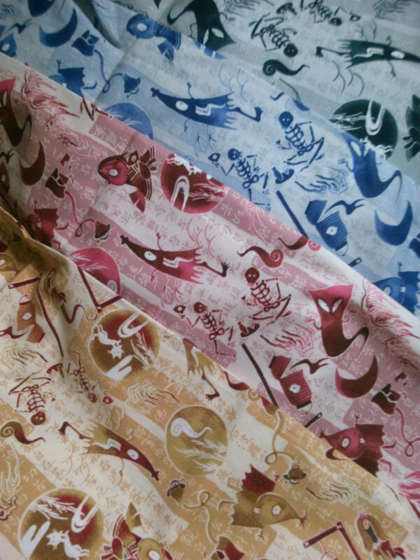 いざ見つけてみれば、想像以上にがっつり妖怪柄で面白いシュシュになりそう。その他に蛇柄とか蜘蛛の巣とか、髑髏柄とかを並べようと思ってます。うまくいけば「鳥獣戯画」が間に合うかもしれない(><)。