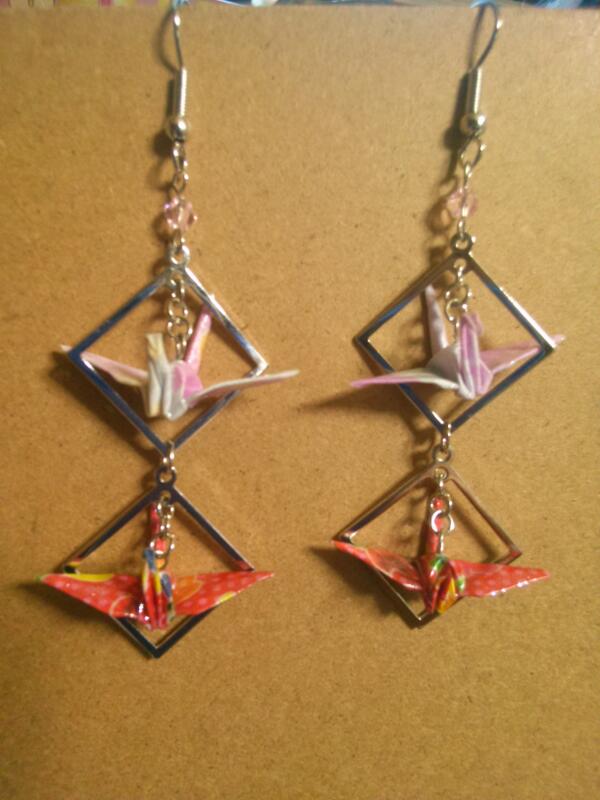 こちらはうちの折り鶴ピアスの新作…というほどのこともないですが、アレンジヴァージョンです。