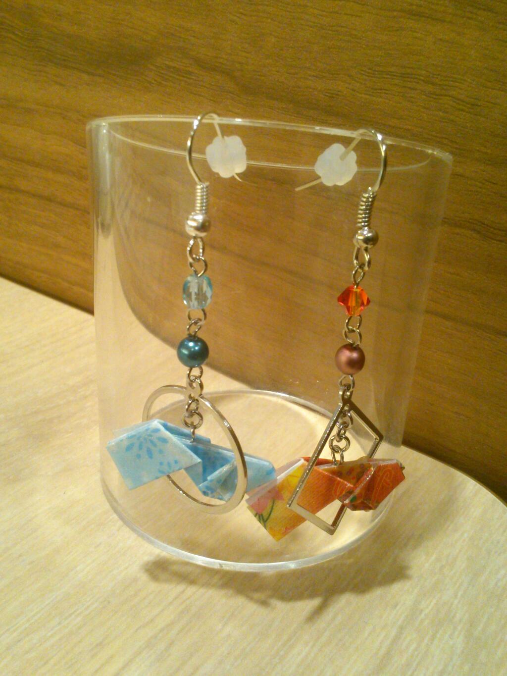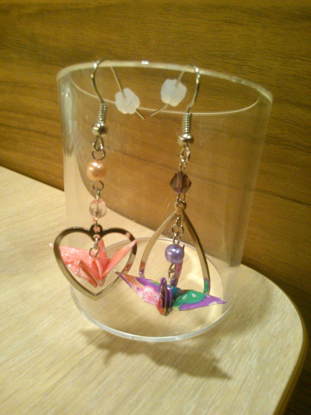 折鶴ピアス、色々種類作ってみました。今の一押しはこれ。