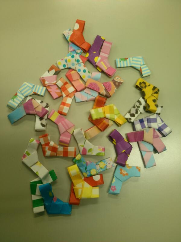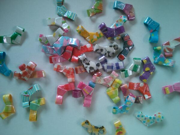 折り紙自体がポップな柄だったので、リボンちっくに可愛い色でまとめてみました。