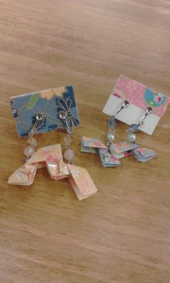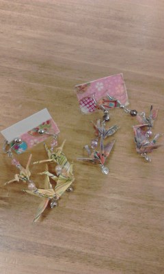 折鶴を加工したイヤリング。