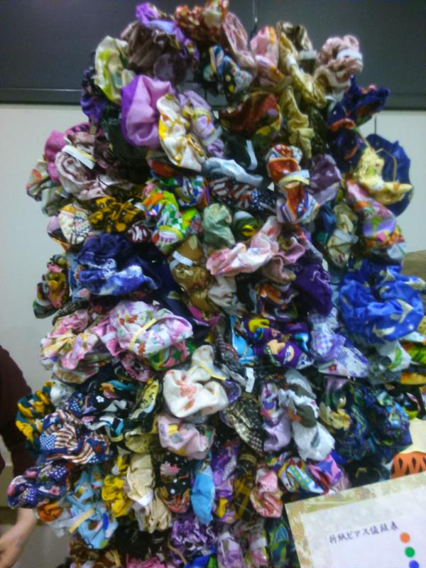 一応何とかお昼には店開きできたような状況でした。もちろんシュシュ壁は作りませんでした(^^;)。そんな余裕はなかったのでシュシュは籠盛り、折り鶴ピアスの壁で頑張りました。結構見てくださる人も多かったので嬉しかったです。