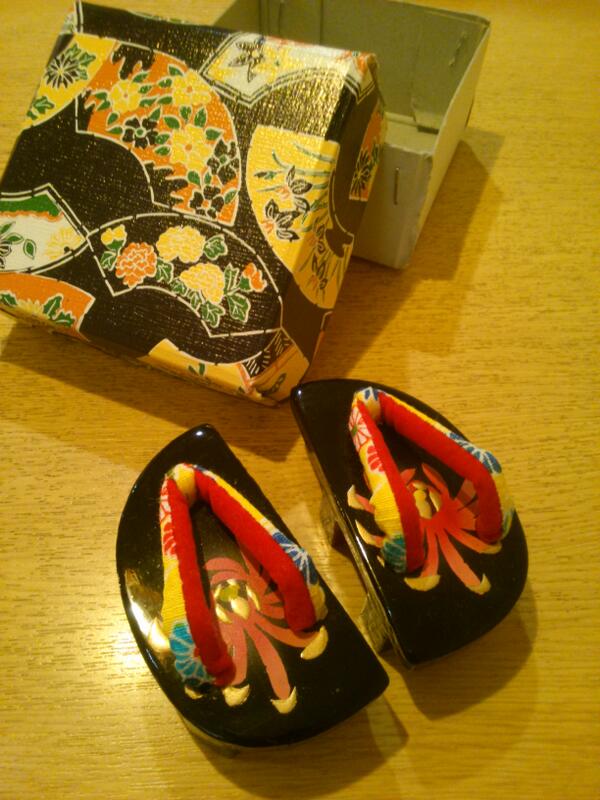 そして、下駄屋さんでうちの子にお土産を買いました。観光用なので飾りとして売ってたんですが、大きさがちょうど良かった♪ 下駄足じゃないとちょっと履き辛いので、今度調達しようかな。「鍋蓋下駄」って言うんですって。ぽっくりタイプのものもあってちょっと悩んだんですが、塗りが綺麗だったのでこれにしてみました。いつも展示の時裸足なんでね、今度ちゃんと履かせてあげようかと。