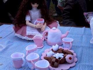 ブルーシート敷いて、ケーキにクッキーに、好きなもの選んで。