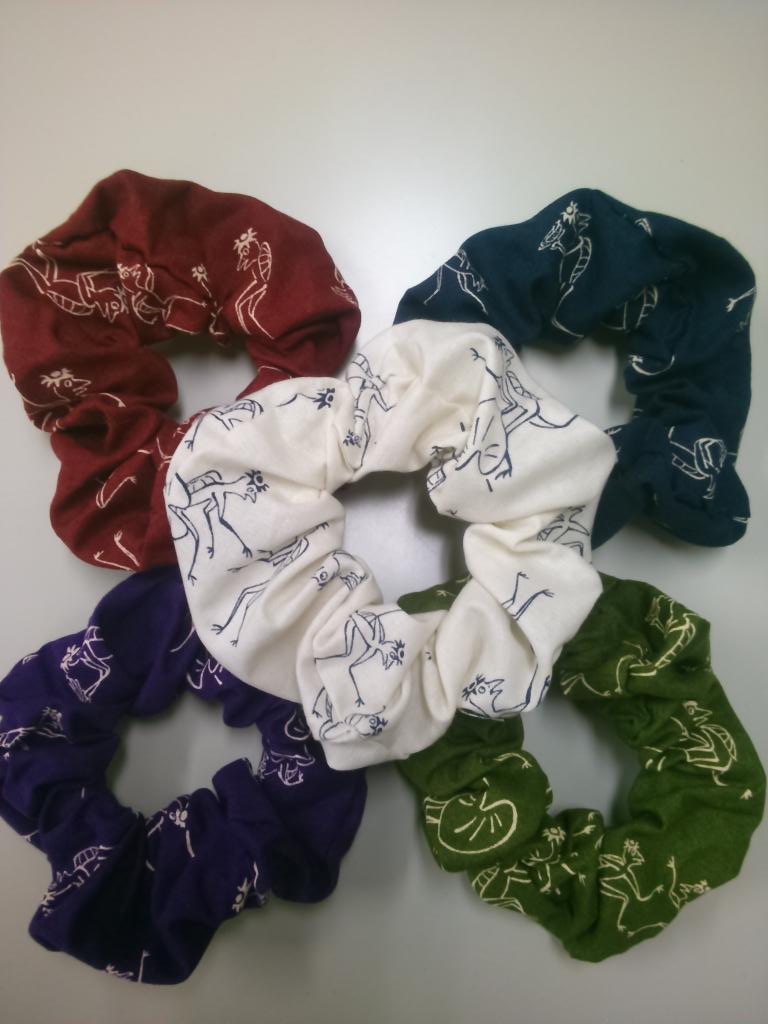 涼花堂の販売物は、妖怪柄シュシュ、折鶴ピアスです。折鶴ピアスはちょっとしか納品できていませんが(^^;)。