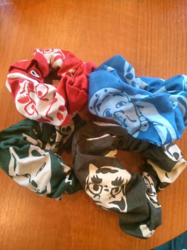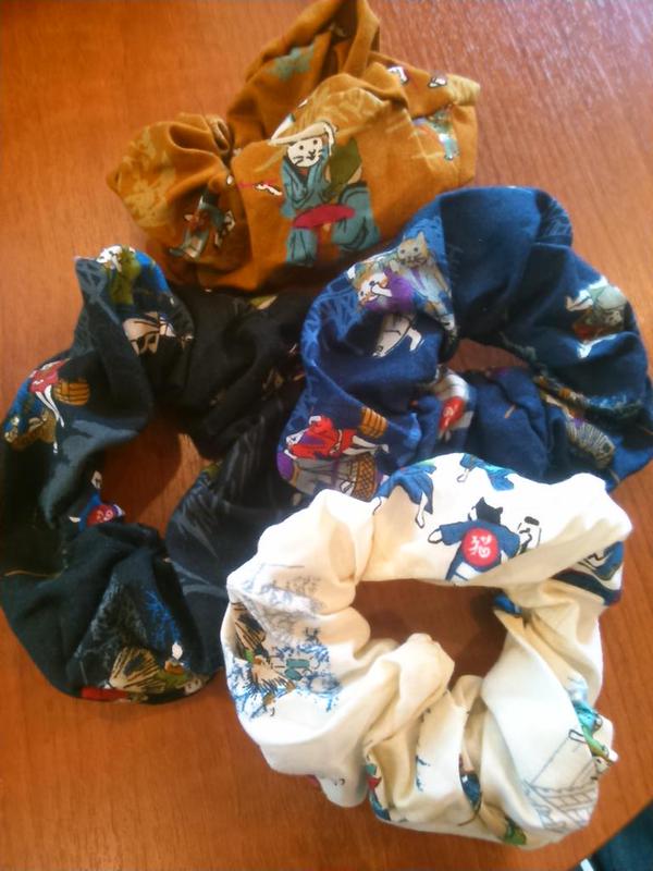 妖怪柄のシュシュ、バシバシ作りますよ~♪ ちょっとこじつけて猫柄や和柄も並べる予定。猫は「化け猫シリーズ」で♪ 折り鶴ピアスももちろん並べます。「鶴姫」という妖怪にひっかけて。「鶴の恩返し」も、物語的には「異種婚姻譚」に分類されるから、言っちゃえば妖怪みたいなもんじゃない? 違うか(^^;)。