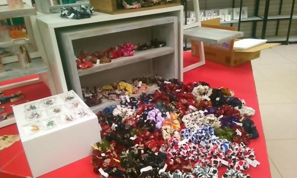 シュシュ、頑張って130個納品したのに、平置き売り場って広い!(><) もう全然埋まった気がしなくて、とりあえずいっぱいあるように広げてみました。